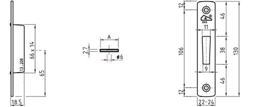 Sluitplaat RVS, niet nastelbaar, U24x5 DIN L/R, v. dag-en nachtschoot incl. eind- en achterkap