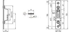 Sluitplaat RVS voor dagslot en rolslot met doorn 15 en23mm, RVS 22x2,5x124mm