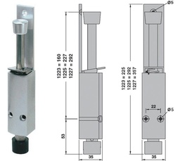 Deurvastzetter, zware uitv., slag 60 mm, huis alum.zilvergrijs gelakt, as RVS.